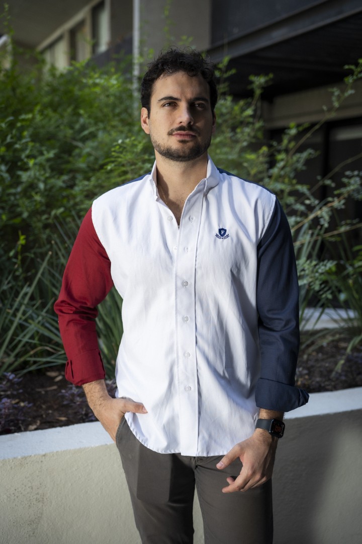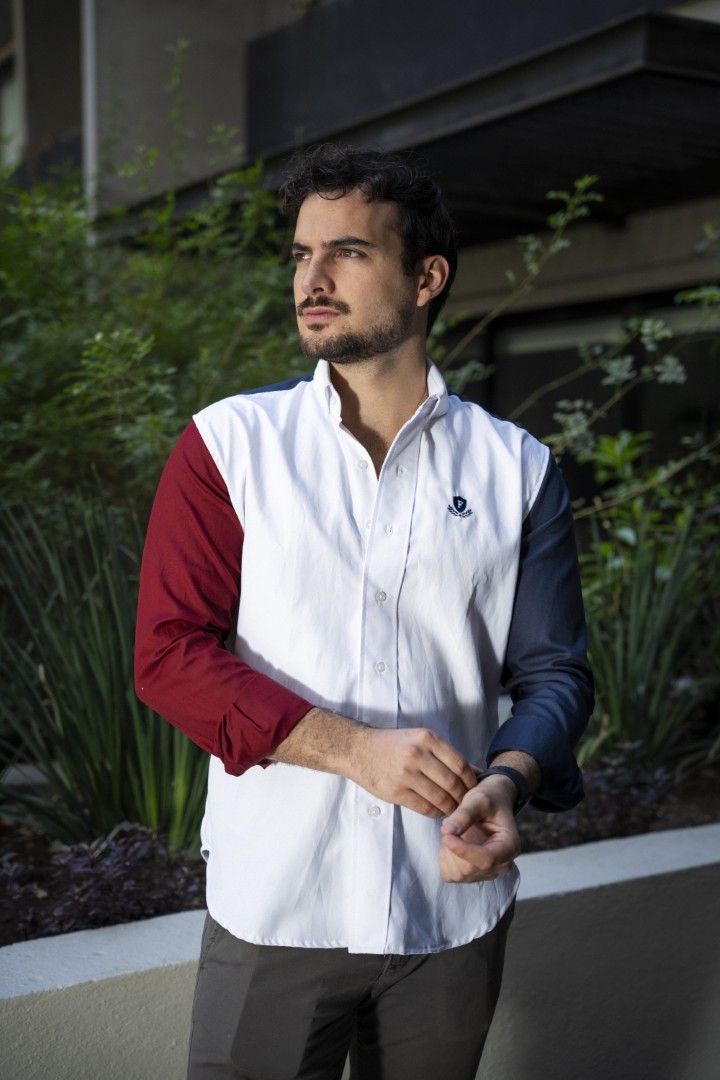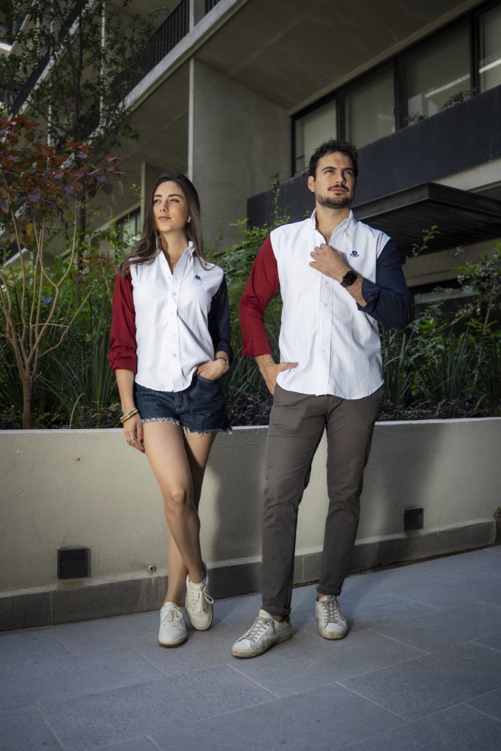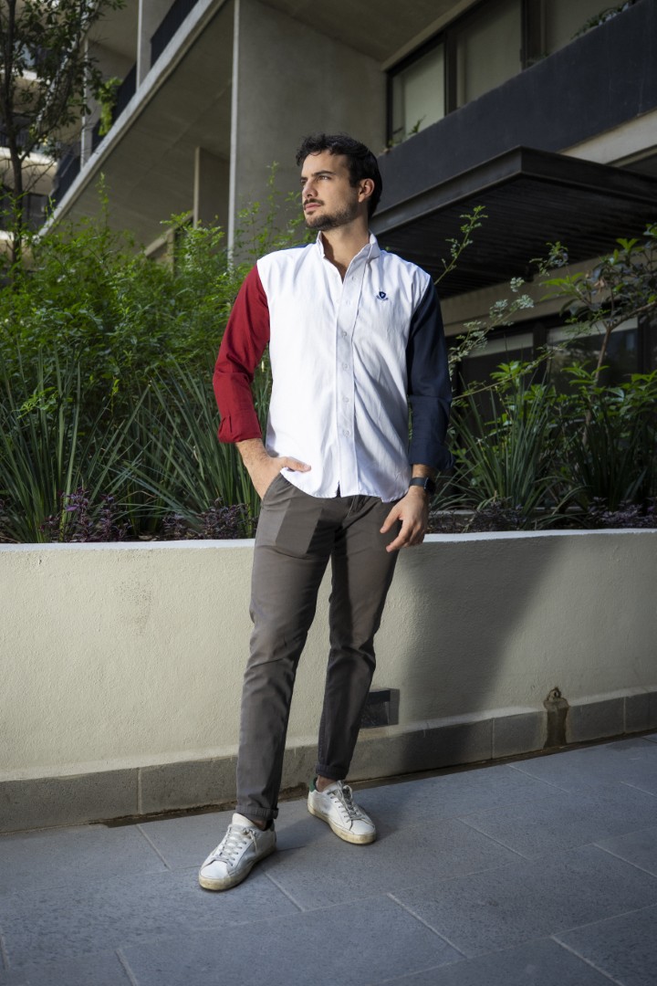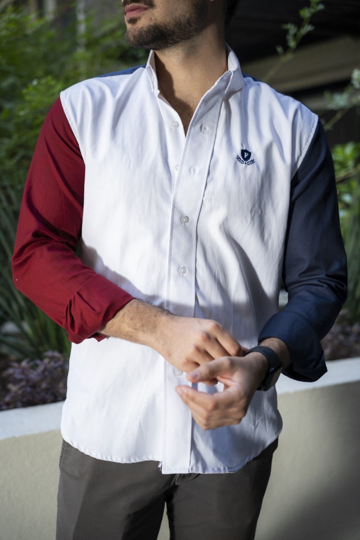 Camisa de hombre con un diseño moderno que llama la atención. Con una vibrante combinación de colores blanco, rojo y azul, esta prenda es perfecta para quienes desean un look contemporáneo. Su logotipo elegante añade un toque de distinción sin esfuerzo.