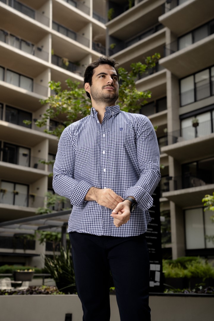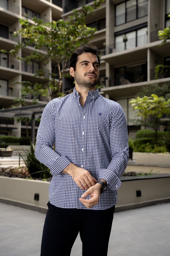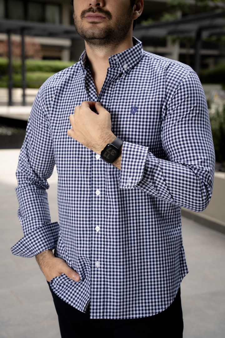 Esta camisa de cuadros combina 50% bambú y 50% algodón, creando una prenda ligera y suave al tacto. Su corte Slim Fit se adapta perfectamente al cuerpo, ofreciendo comodidad sin sacrificar estilo. Con un tono fresco en azul y blanco, es ideal para cualquier ocasión, ya sea casual o semi-formal.