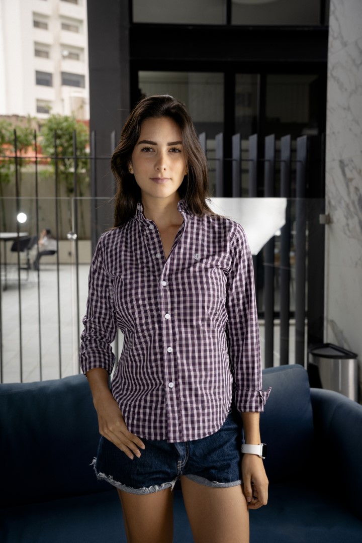 Esta camisa de cuadros en tonos violeta y blanco es una mezcla perfecta de comodidad y modernidad. Fabricada en una suave tela de bambú y algodón, su corte cómodo la hace ideal para llevarla todo el día, ya sea en una reunión informal o en un evento más casual.